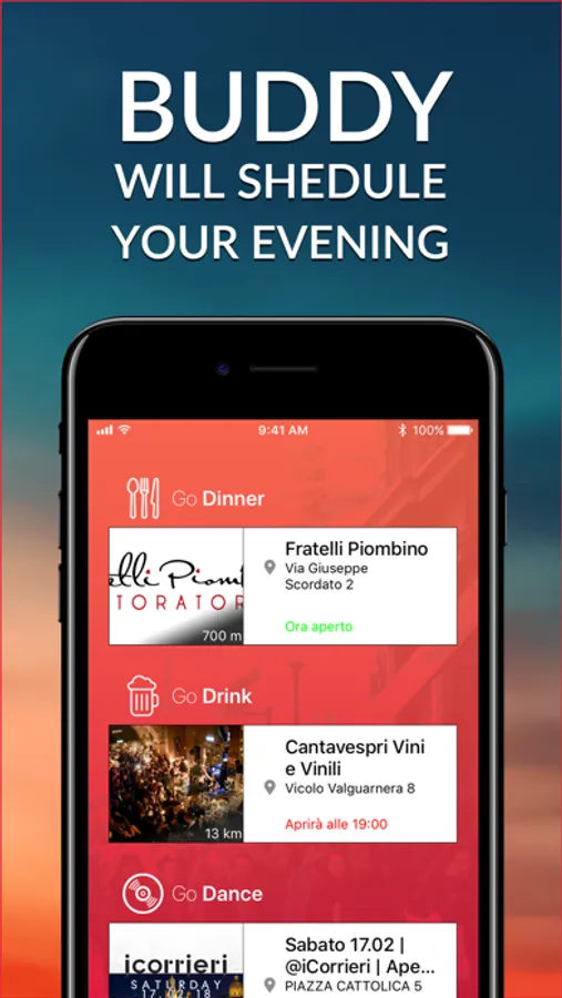 Buddy will schedule your day from the aperitif going through dinner to disco.