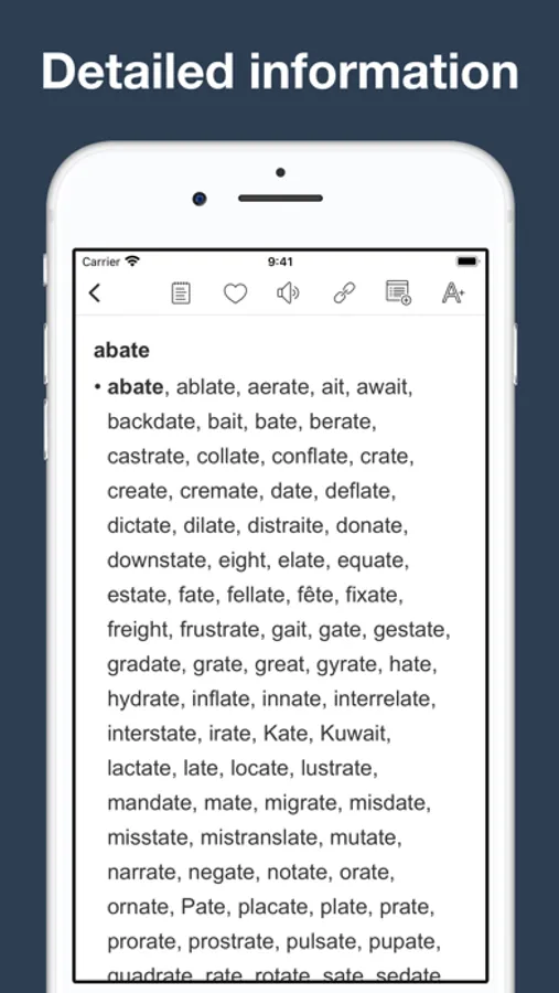 From writing poems to writing song lyrics, this app has what every writer needs. It contains rhymes for over 45,000 words, including proper names, place names, and foreign terms used in English.