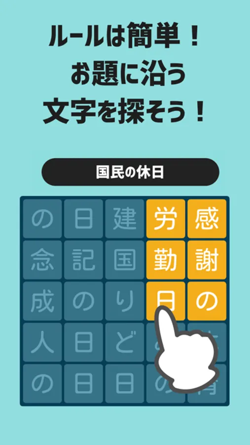 2. 指で文字をなぞって繋げて、お題に関する言葉を作ってください。