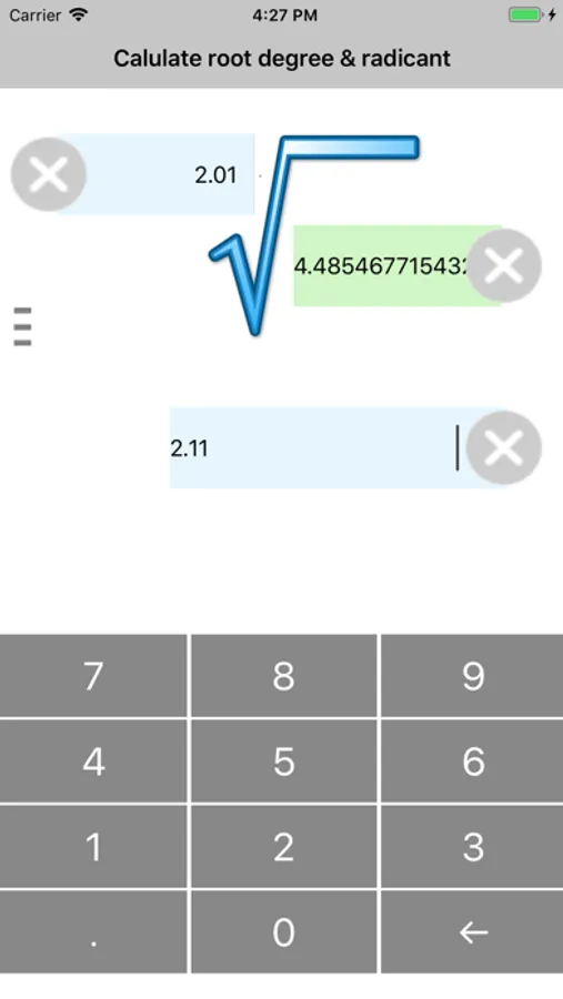 Root of any degree calculator allows to calculate Easily calculate radicant, degree and root. Calculations are also carried out for fractional values.