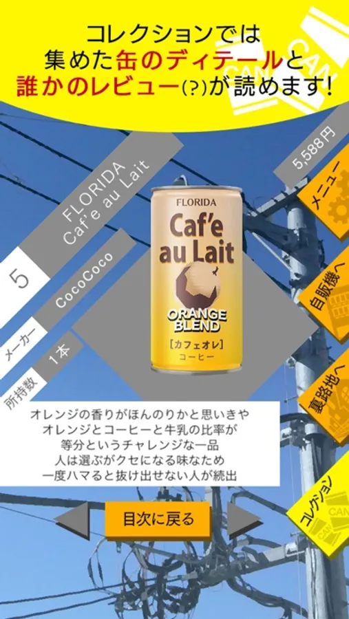 集めた缶の情報を見ることができます。