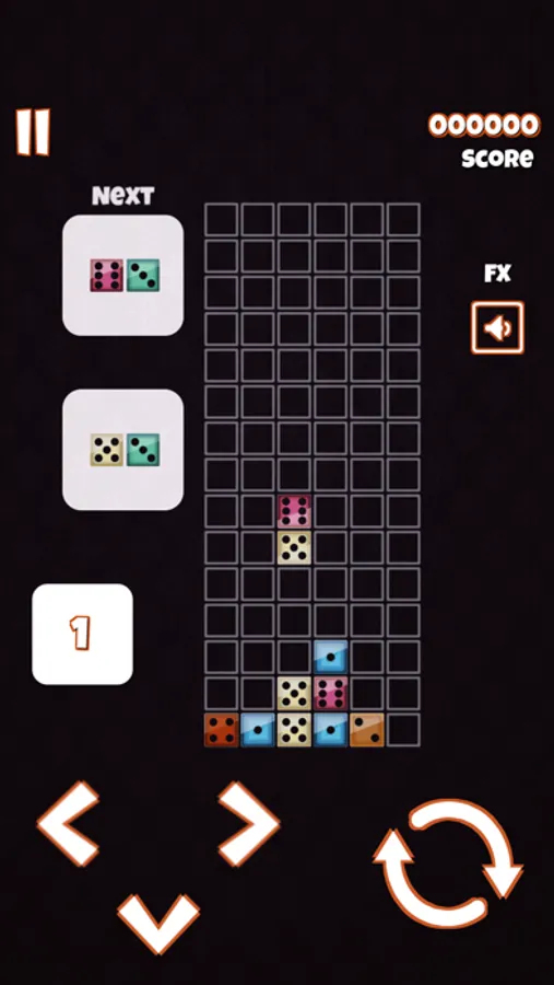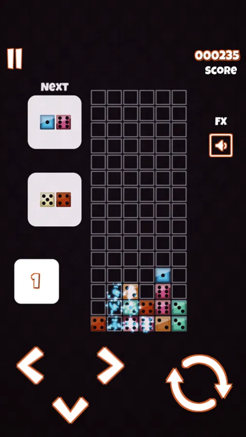 Merge the falling dice blocks the same or bigger amount of the dice value, to remove them from the grid.