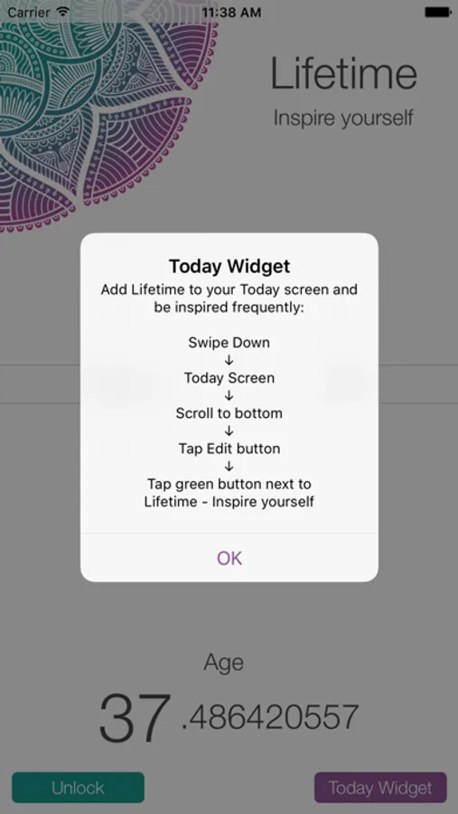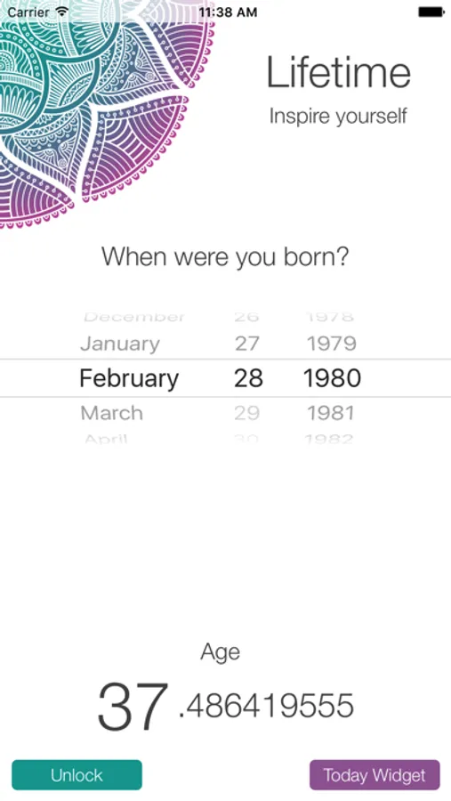 Inspire yourself daily with our live age counter. Install the app; it comes with a real-time widget for your Today screen. There is no better motivator than time. You will be amazed at what you can achieve by frequently looking at your age running in micro seconds.