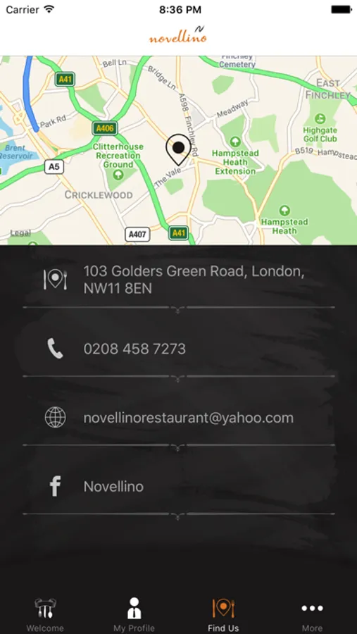 *A nice find us map, You can click on the map and it will show u exactly how far and how to get to Novellino Restaurant