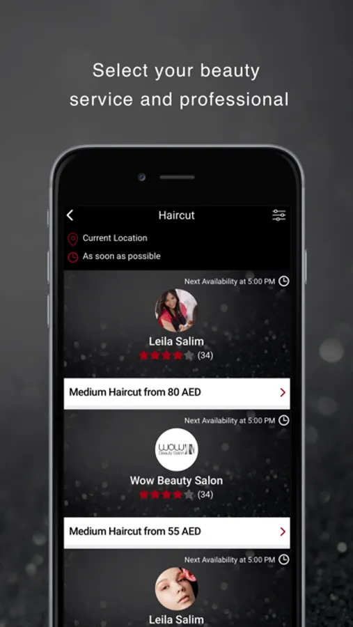 - Browse available Professionals’ bios, services, photo galleries, pricing, and ratings in order to select the best fit for the look you want.
