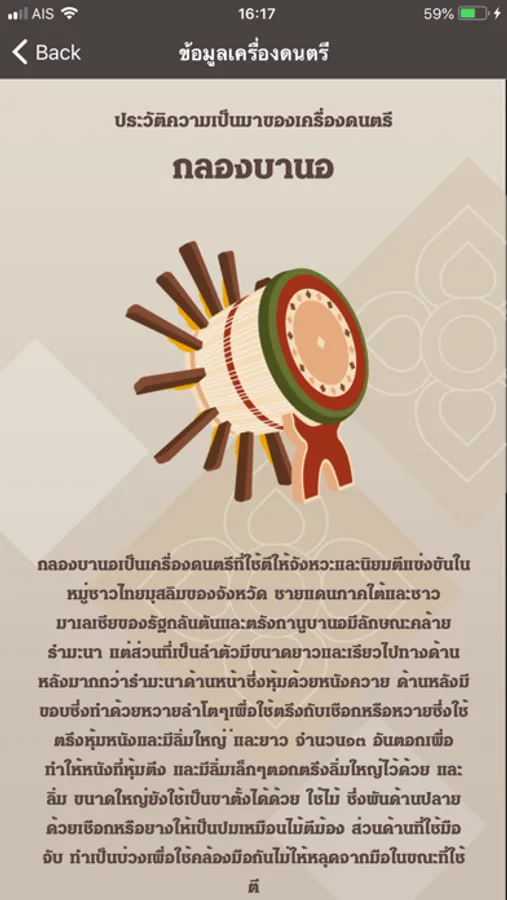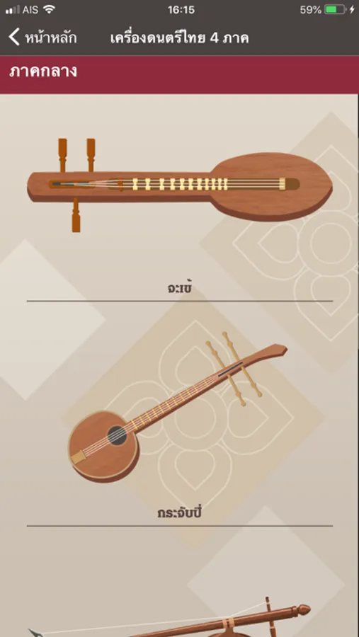 ภายในแอปพลิเคชันมีการรวบรวมคลื่นความถี่เสียงของเครื่องดนตรีไทย วงปี่พาทย์ วงมโหรี เสียงร้องหญิงและชาย รวมถึงเครื่องดนตรีพื้นบ้านทั้ง 4 ภาค ได้แก่ ภาคกลาง ภาคเหนือ ภาคตะวันออกเฉียงเหนือ และภาคใต้ รวมมากกว่า 60 ชนิด