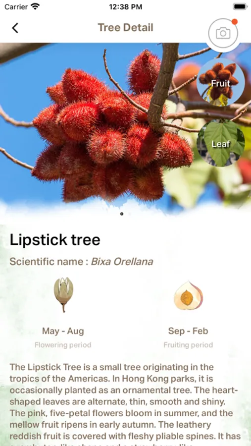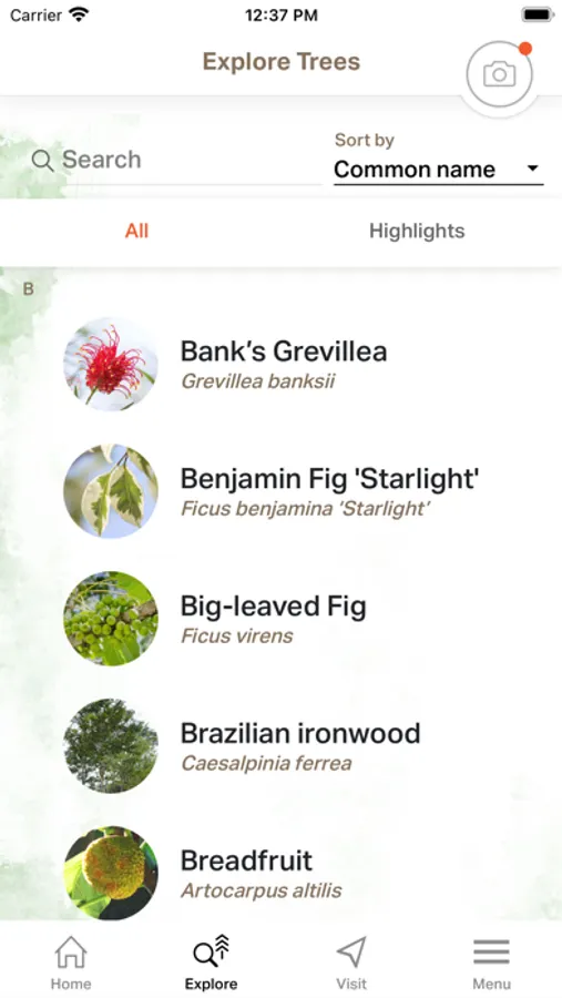.EXPLORE TREES: search trees by keyword, common name or scientific name. You will be able to learn about their habitat, seasonal changes and how to identify different species by their flowers, fruit or the shape of their leaves