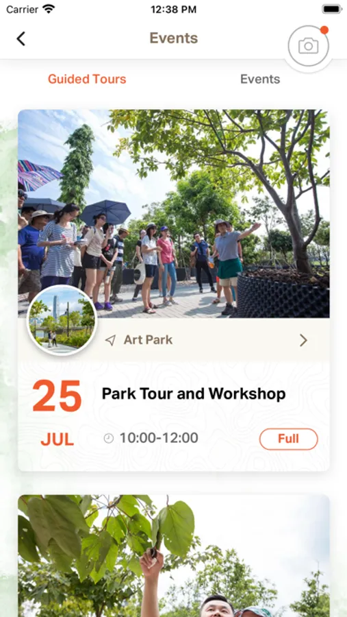 .「導賞團及園區活動」:透過應用程式報名參加藝術公園樹木導賞及工作坊,及了解園區內的展覽,表演或其他活動