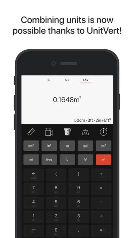• Choose between metric system (SI), US system or your personal favorites