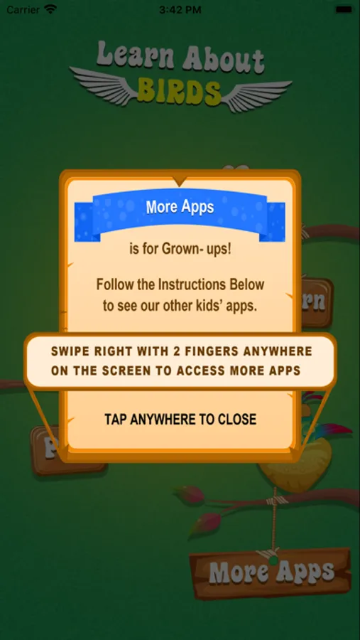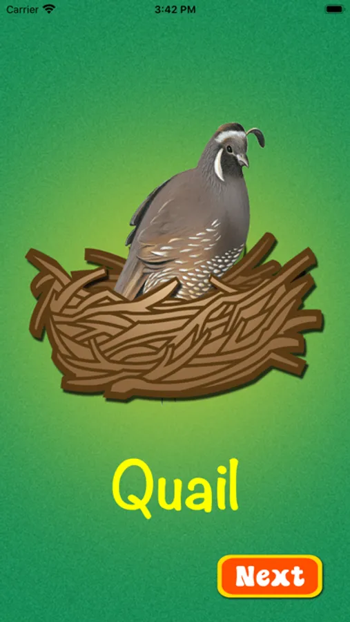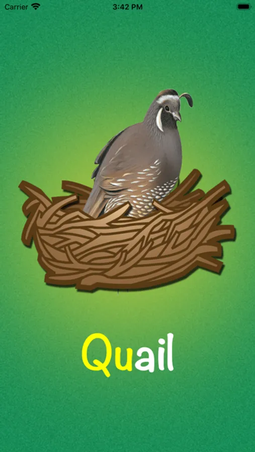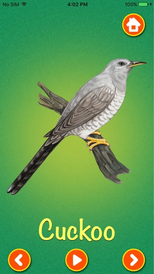 Learn: Images, Spelling and a background voice makes recognition birds by name and its image. The voice over gives a correct pronunciation of the name of bird.