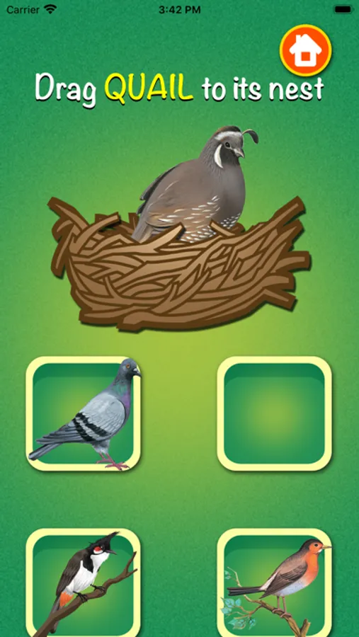 Learn About Birds: / Learn birds by Name, Sound, Spelling / Play with birds by moving them into nest