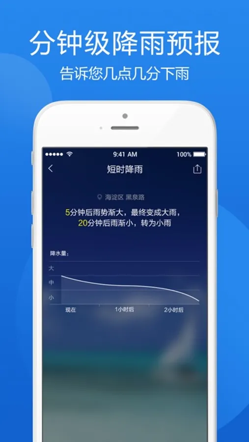 * 2小时分钟级降水预报预警,告诉您几点几分下雨;
