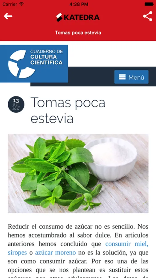 Katedra is an app that keeps you posted about the latest publications in the blog network of the Chair of Scientific Culture of the University of the Basque Country, UPV/EHU.