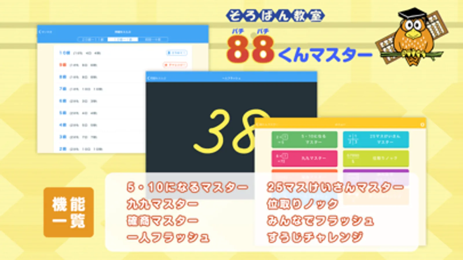 このアプリは、幼児から通える「そろばん教室88くん」の公式アプリです。