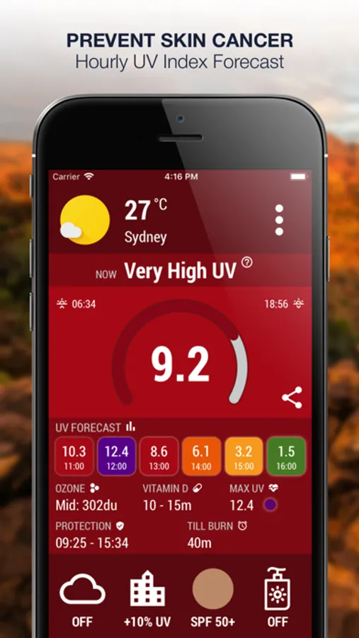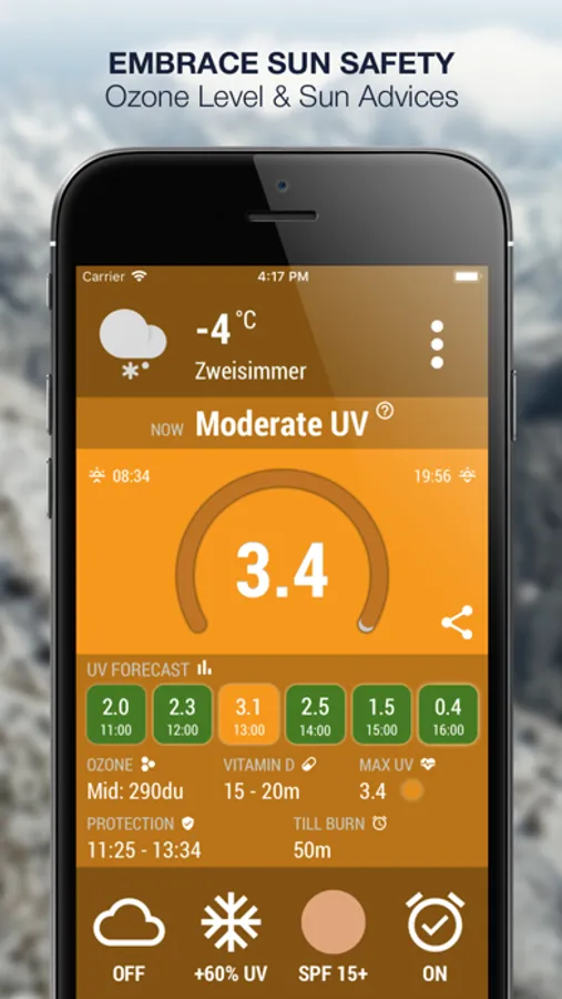 * UV Index alarm notifications and sun safety advices