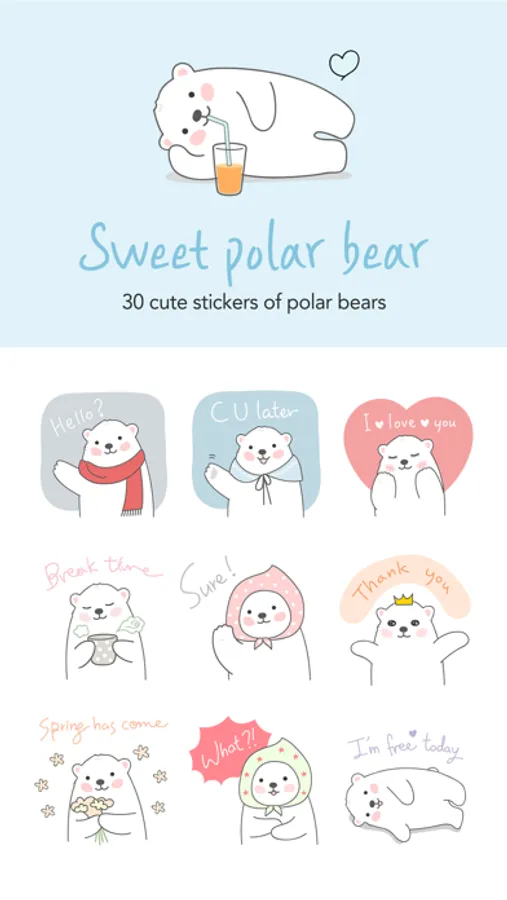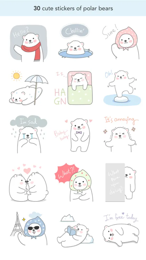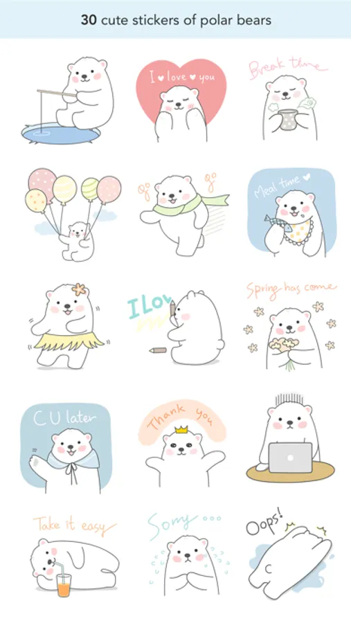 Newly launched 30 Sweet polar bear stickers pack! Cute and lovely bear.