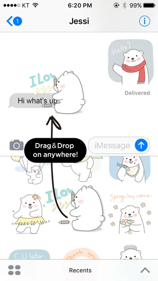 • You can peel and place them on anything in your conversation – bubbles, images, or even other stickers.