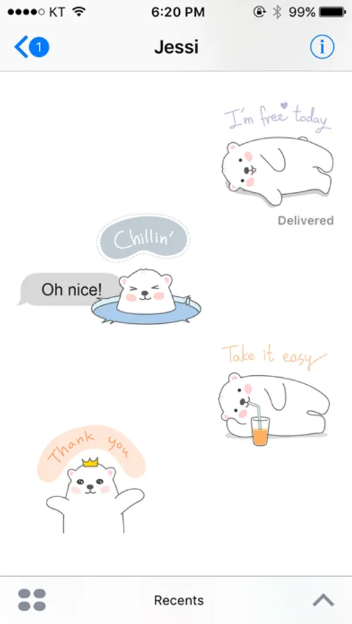 • Tap the icon on the lower left corner and then the plus icon to access the App Store for iMessage. Tap Manage tab and find Sweet polar bear stickers to add them.