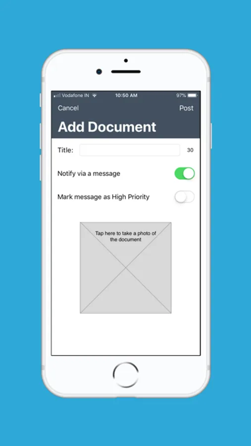 Take a photo of an official message, post it to the Documents menu and send a Message, all with one click.