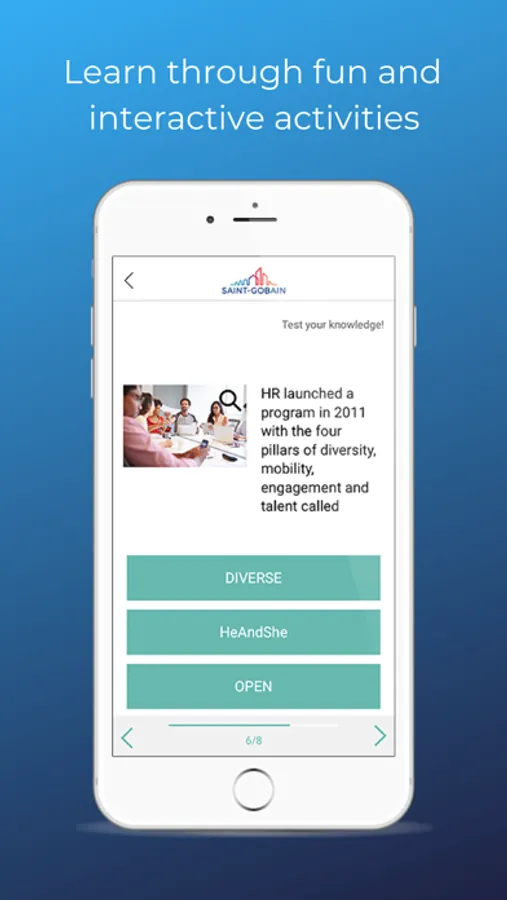 GO! Test your knowledge with quizzes and compete with your colleagues. Follow your progression with leaderboards, badges and dashboards.