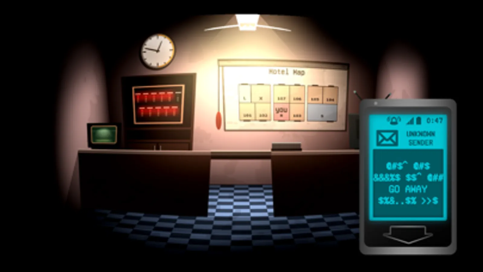 You don't have just to watch at cameras as a night security guard, but you can freely walk around and interact with the environment.