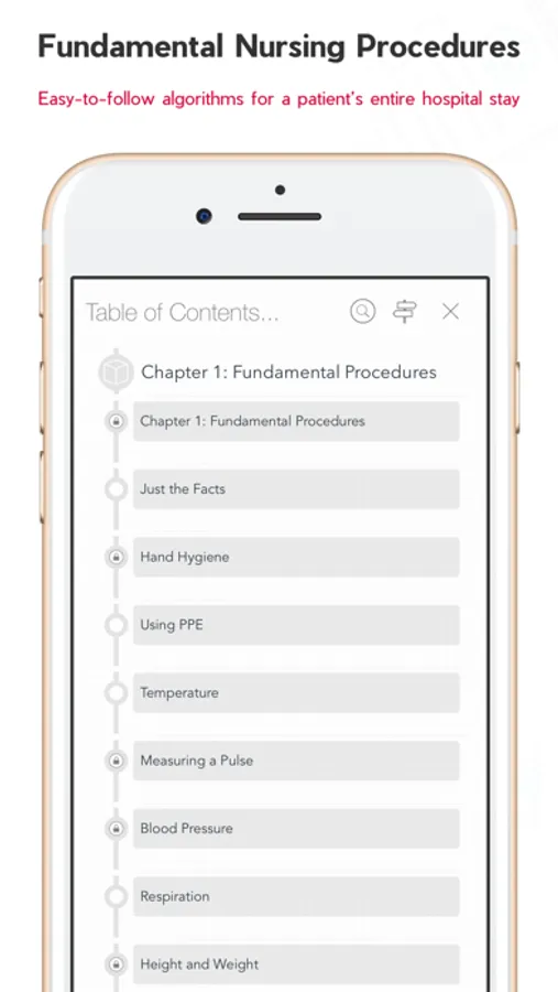 - Approximately 10% of the content is viewable in the free app and tapping on the locked topic will launch the in-app purchase screen.