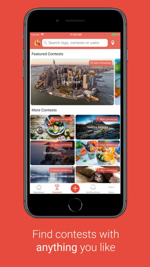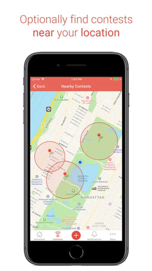 • Optionally create location-based photo contests to only allow people from a specific location to join