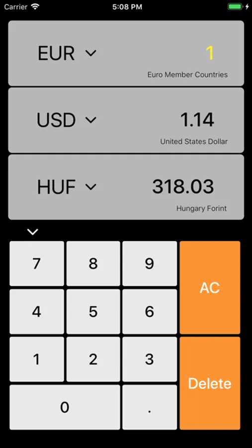 The numbers entered one by one to delete. The display Swipe Gesture right.
