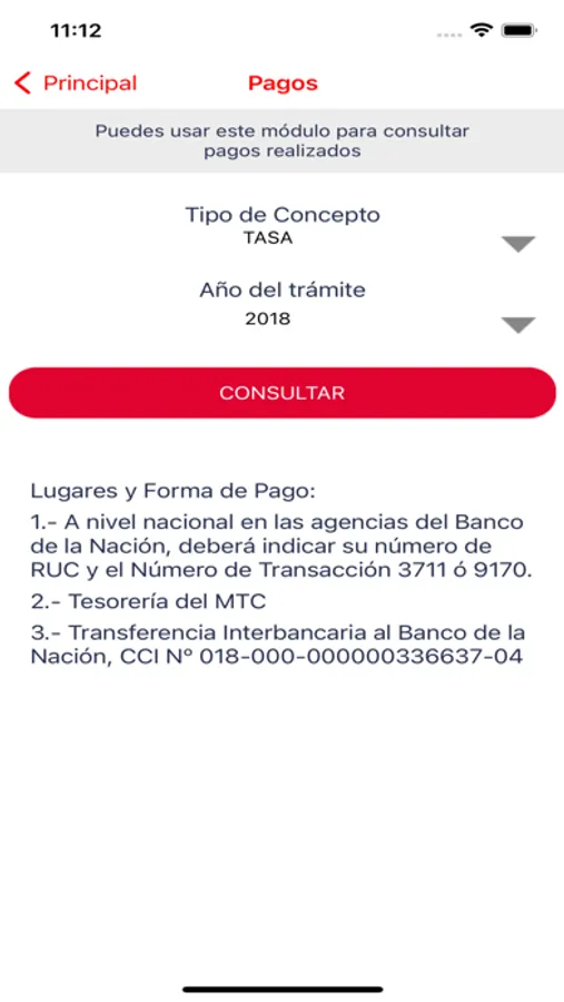 Aplicación de consulta de Obligaciones Económicas, Pagos y Declaraciones Juradas de Ingresos para los Concesionarios de Servicios Públicos de la Coordinación de Obligaciones Económicas de la Dirección General de Concesiones.
