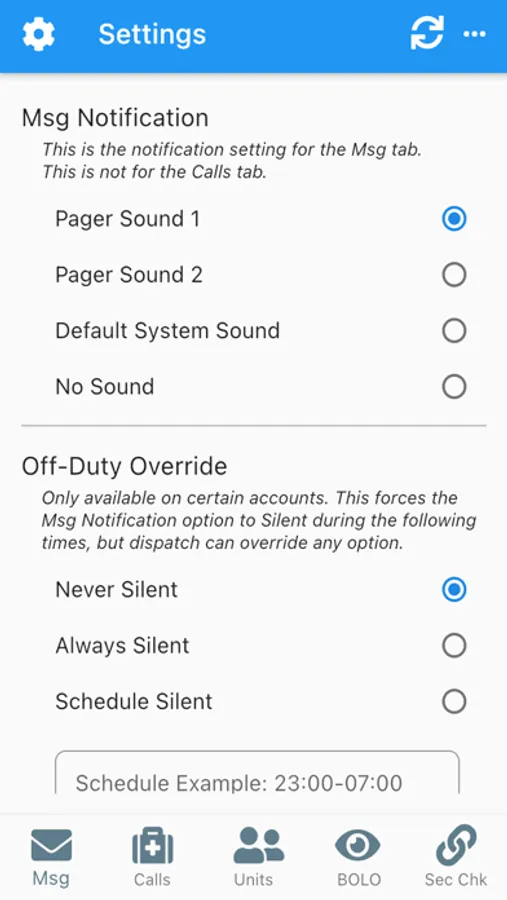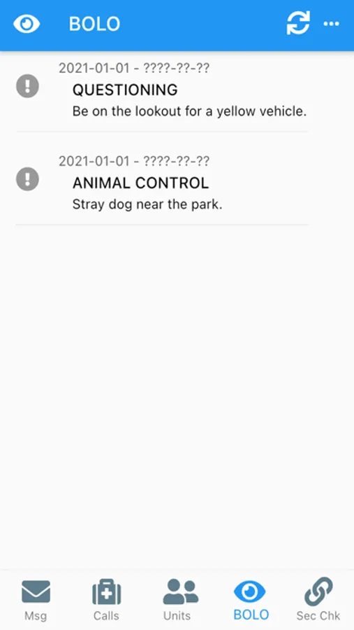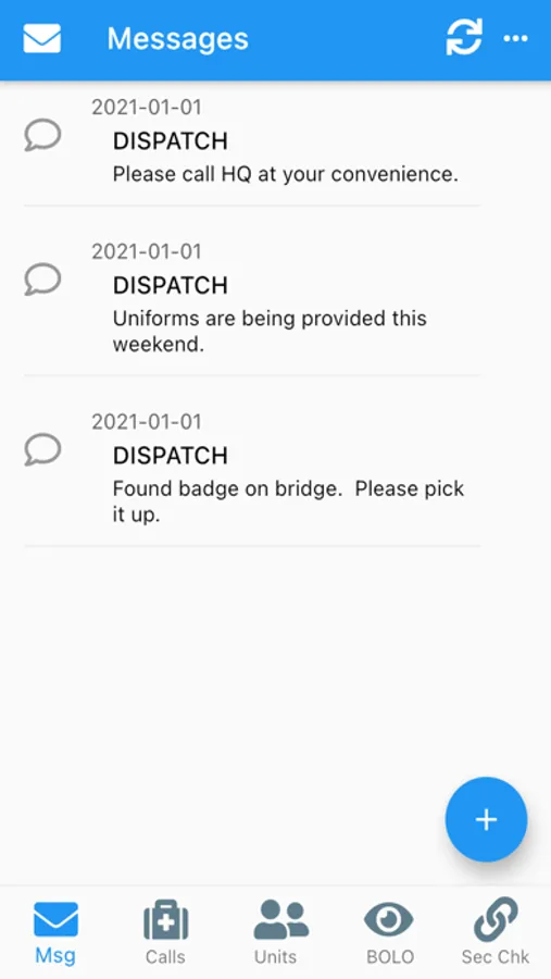This app sends messages to and from public safety dispatch, and shows service call information for public safety incidents.