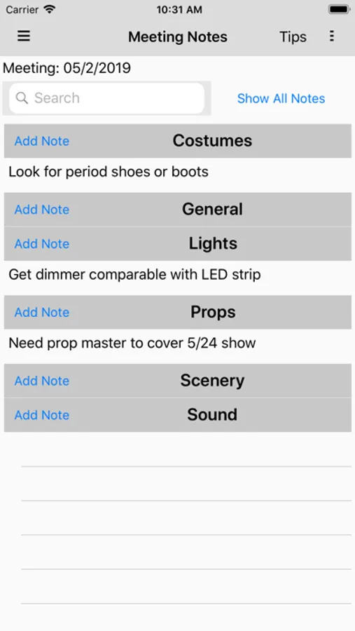 • Generate property lists, costume lists, equipment lists, to do lists.