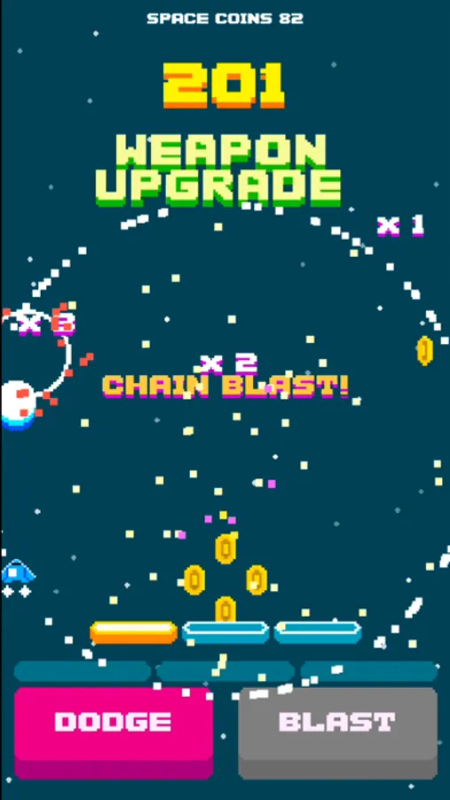Dodge Blast is a classic arcade space shooter with two button controls. Build up your high score with combos and by blasting enemy formations. Pick up space coins to unlock new ships and fight your way through this strange and endless galaxy.