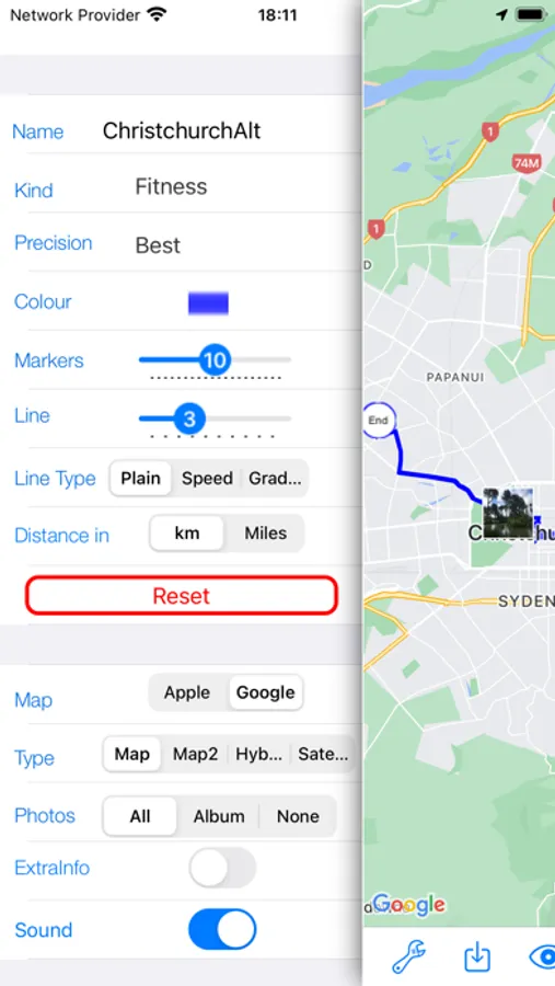 You can switch between mp/h and km/h and adapt the route polyline to your liking. The app is working in the background, so your battery will be grateful and you can listen to music, take pictures and answer a call while 'Router' is recording your trip in the background.