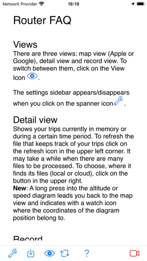 With 'Router' you can record your bike trips and show them on Apple - Maps AND Google Maps. Save them on your iPhone/iPad or in the cloud and share your trips with friends. Import and export GPX-files and KML-files from the internet or via email. iPads without GPS-Module (cellular) show all features, but can not record.