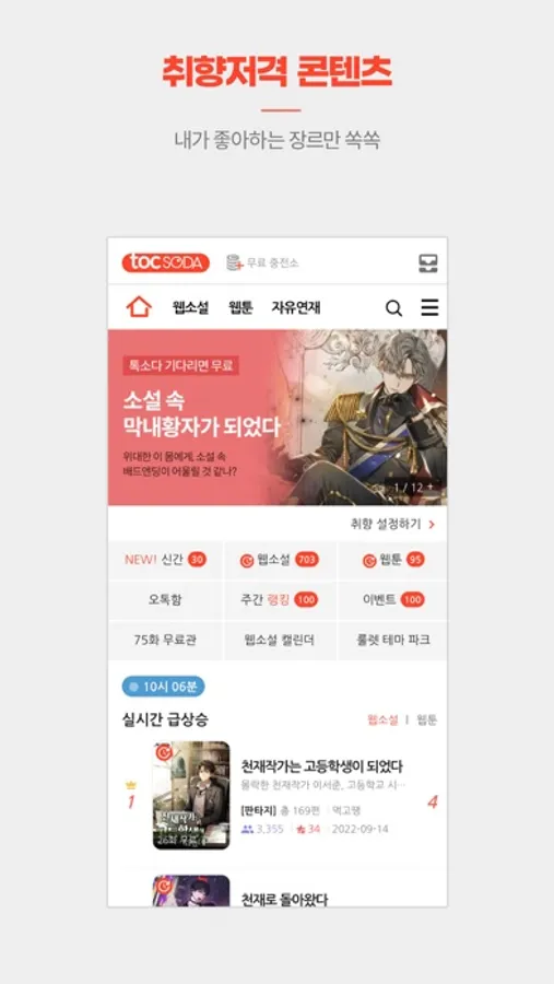 웹소설 플랫폼 최초! 장르별로 구분된 메인으로 내가 좋아하는 장르만 쏙쏙!
