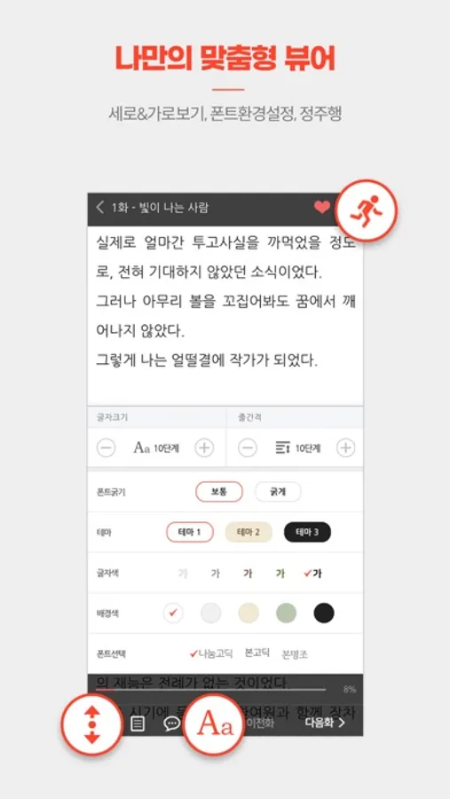 세로&가로보기, 다양한 폰트와 크기 설정 등 나만의 뷰어를 만들어보세요.
