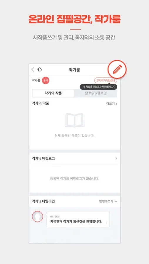 ► 누구나 작가 신청, 온라인 집필 서재 '작가룸'