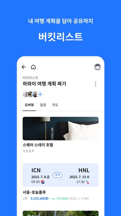 가고 싶은 곳을 간편하게 담고 친구와 여행을 공유하고 계획해보세요.