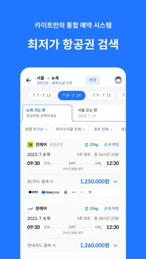 • 카이트만의 독자적 항공 검색&예약 시스템