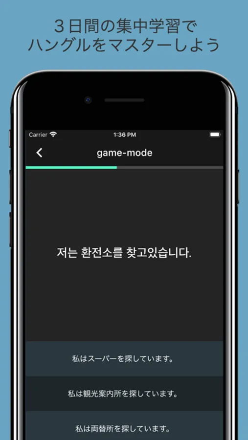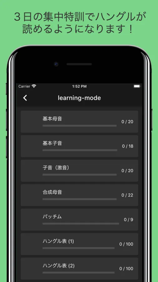 このアプリでは3日間の集中学習を通じて、ハングルの読み方と書き方を徹底的に訓練します。