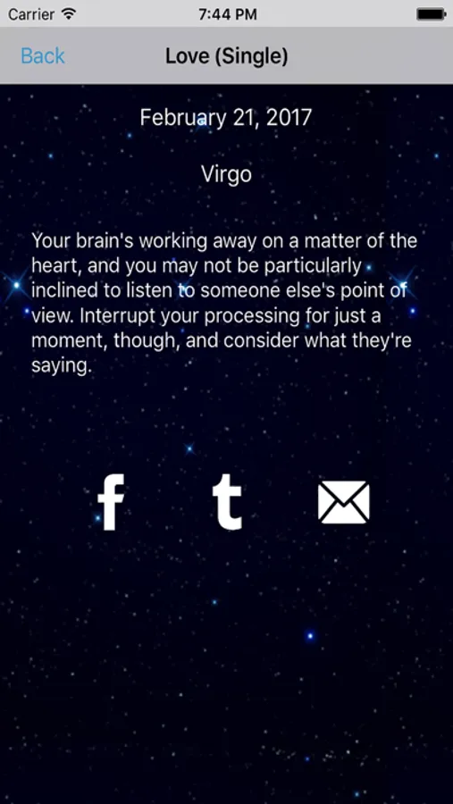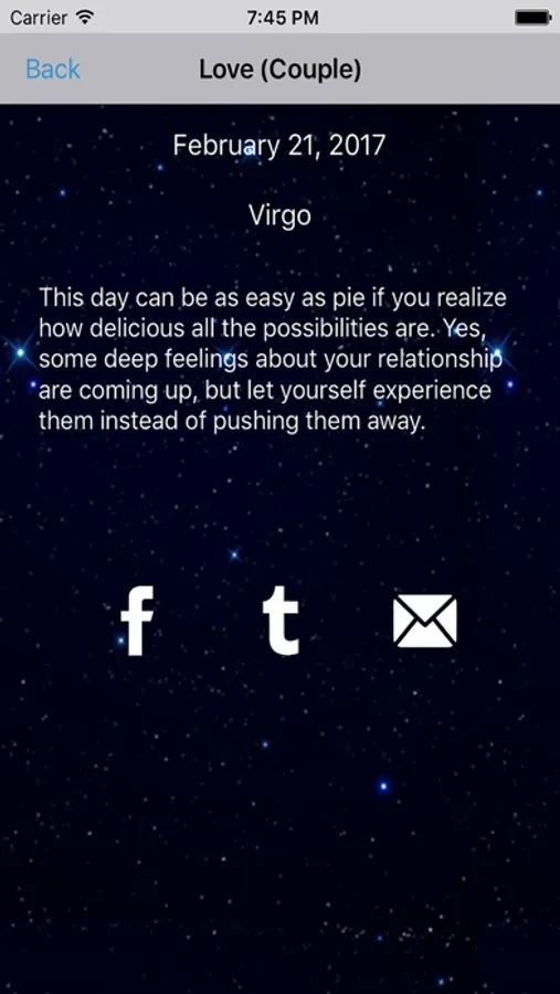 - Share with your friends your horoscope prediction to Facebook, Twitter, and more!