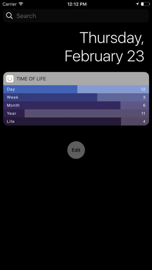 "Time of Life" will help you realize where you are on the line of your life. What part of your life/year/month/week/day is gone and how much is left. Use the application widget to remind yourself about time and use your time best way.