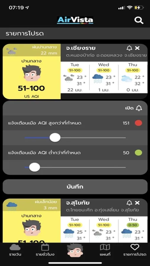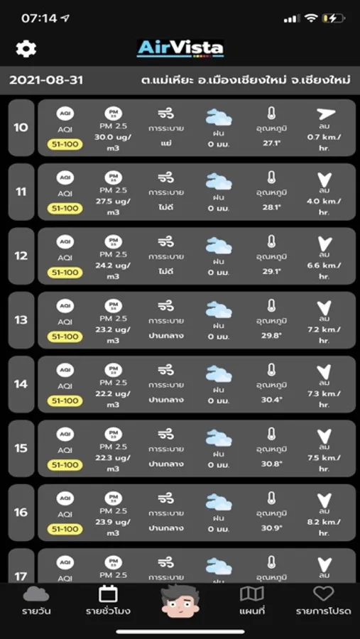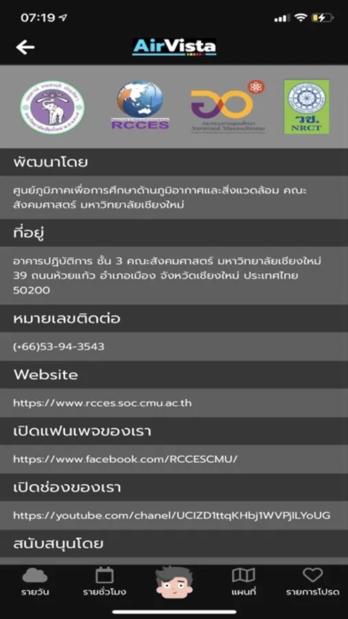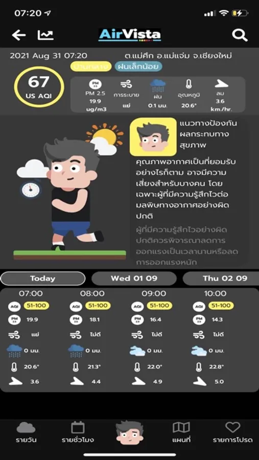 AirVista is the Air quality application based on the output of the WRF-Chem air quality forecasting model. WRF-Chem is a 3-5 days real-time forecast with the highest 4 km gridded resolution that can use for accessing air quality and related data in areas of the lacked measurement tools. AirVista report not only the air quality forecasts but also the related-air-quality meteorological forecast data (Wind, Precipitation, Temperature, and Ventilation Index). Moreover, this application also reported the ground-based PM2.5 observation open data and satellite-based fire hotspots data for monitoring the current air quality situation. AirVista provided the health risk reduction advisory for public people to protect themselves from polluted air-exposed and the necessary data for decision-makers who work on air pollution control and prevention sectors. However, the model system is undergoing research and development which users should use it under these restrictions.