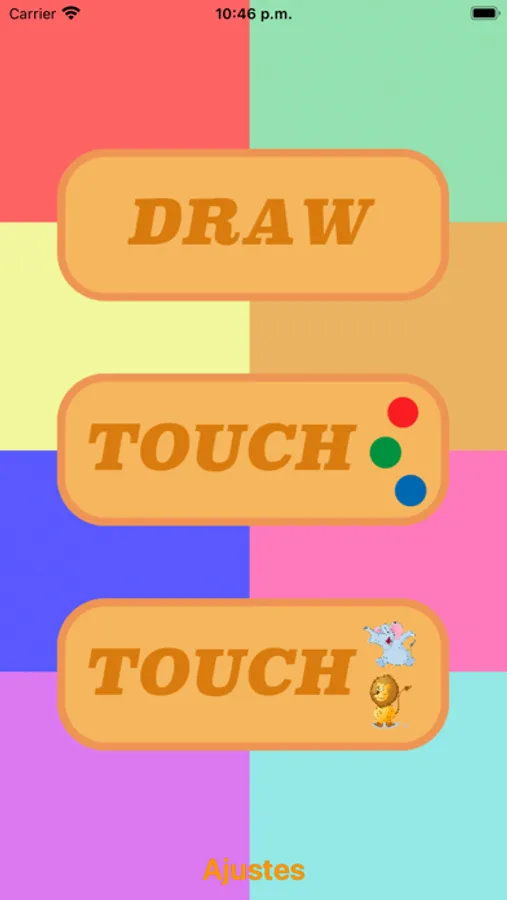 Touch the screen and according to which area of the screen you press, it will turn to another color and emit a different sound, piano sound or animal image and sound.