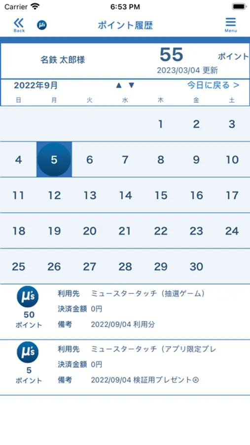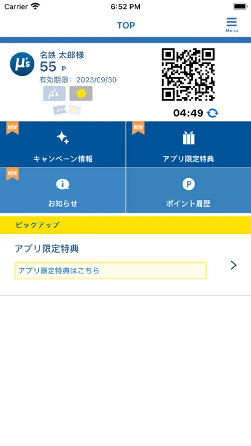 ・アプリでのログイン後、名鉄ミューズ会員のID(二次元コード)が表示されます。
