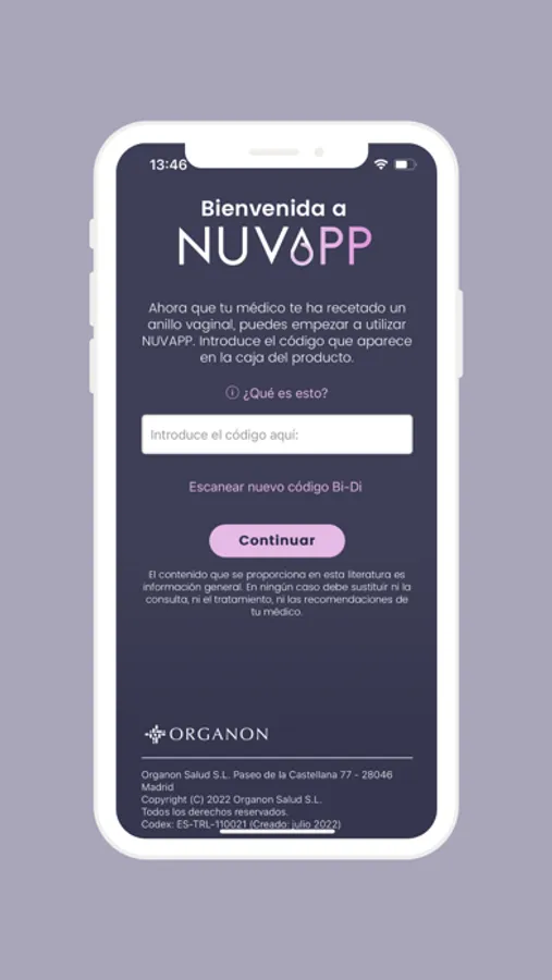 NUVAPP es la aplicación que te ayuda con el control Nuvaring, el anillo anticonceptivo mensual de Organon, gracias a los avisos para ponerte y quitarte el anillo. Para empezar a usar NUVAPP, sólo debes introducir el código de lote que aparece en la caja (no el código de barras) que te ha prescrito tu profesional sanitario, o escanear el código Bi-Di de la misma y olvídate de ponerte avisos, NUVAPP se te encarga de recordarte cuándo es el momento de ponerte y quitarte el anillo anticonceptivo mensual de Organon.