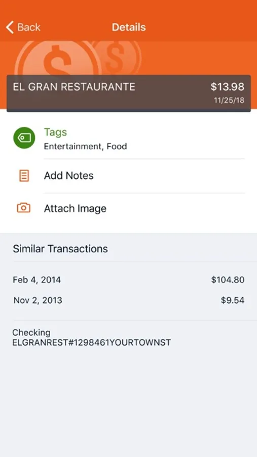 Add Tags, Notes, Images & Geo-Information: By enhancing transactions with custom tags, notes or photos of a receipt or check, you have the ability to stay organized and find exactly what you’re looking for when searching through your finances.