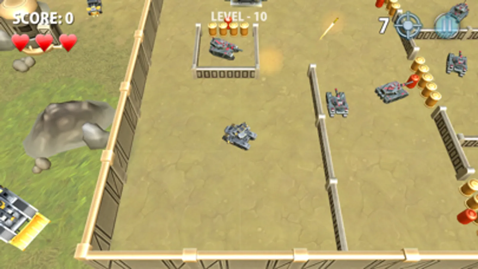 Use joystick for move the tank and tap targets to shoot. Destroy all enemy tanks!