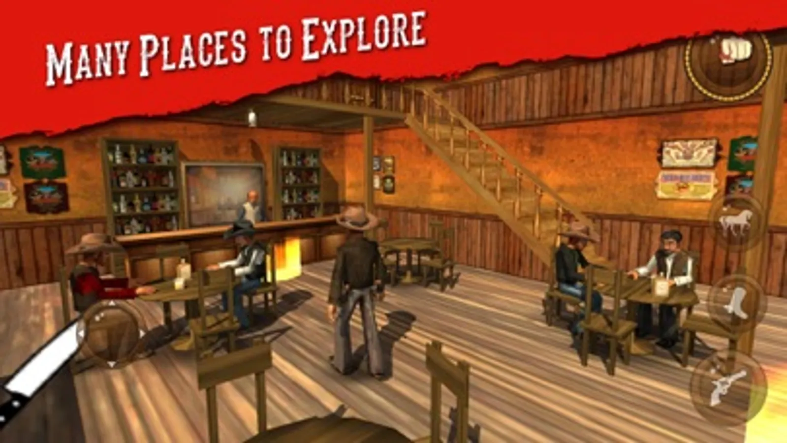 You can enter buildings such as saloons, gun shops, church and more. Also, you can buy new safehouses all over the map and change your character's outfits. The 'Wanted' missions include quickdraw mini-games.