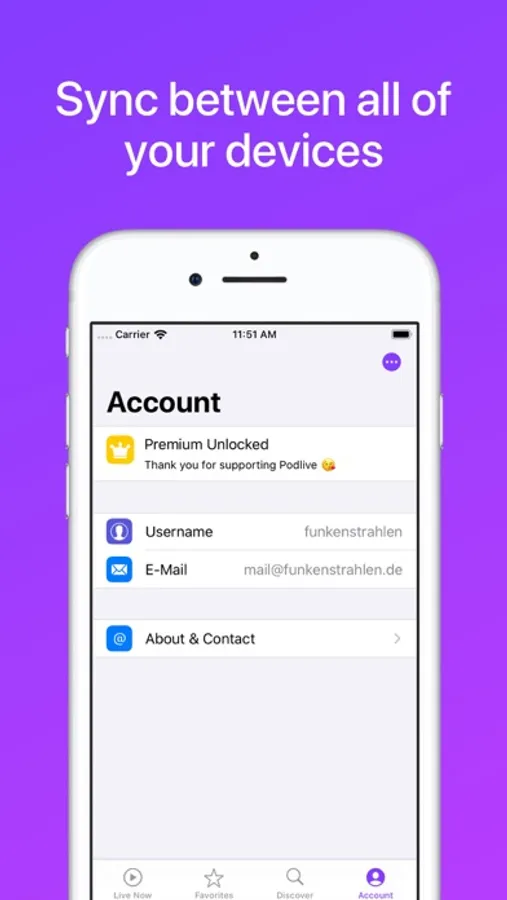 Synchronize your Podlive settings and favorites between all your devices. Create a Podlive account to log in on all devices.
